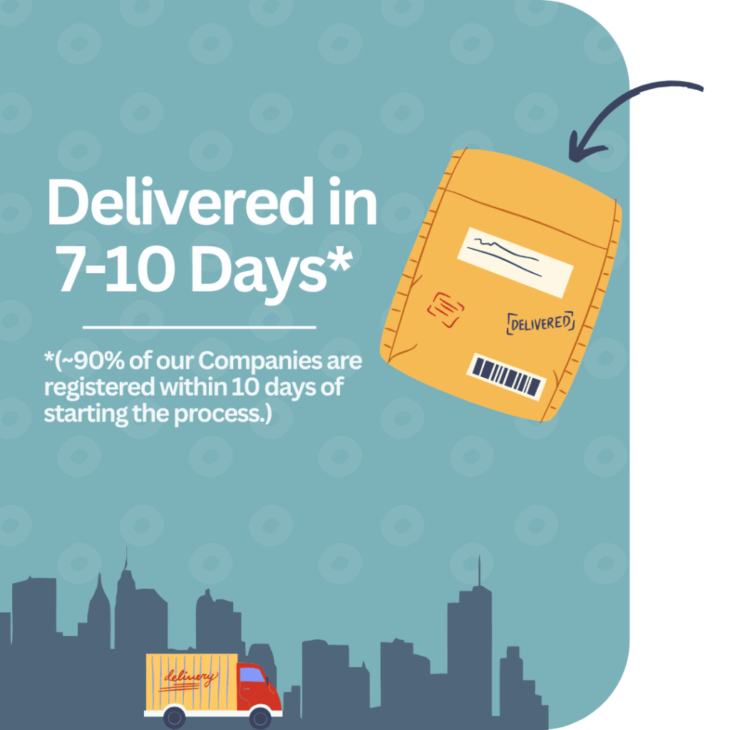 Company documents such as MOA, AOA & Certificate of Incorporation will be shared via email once the registration is complete.